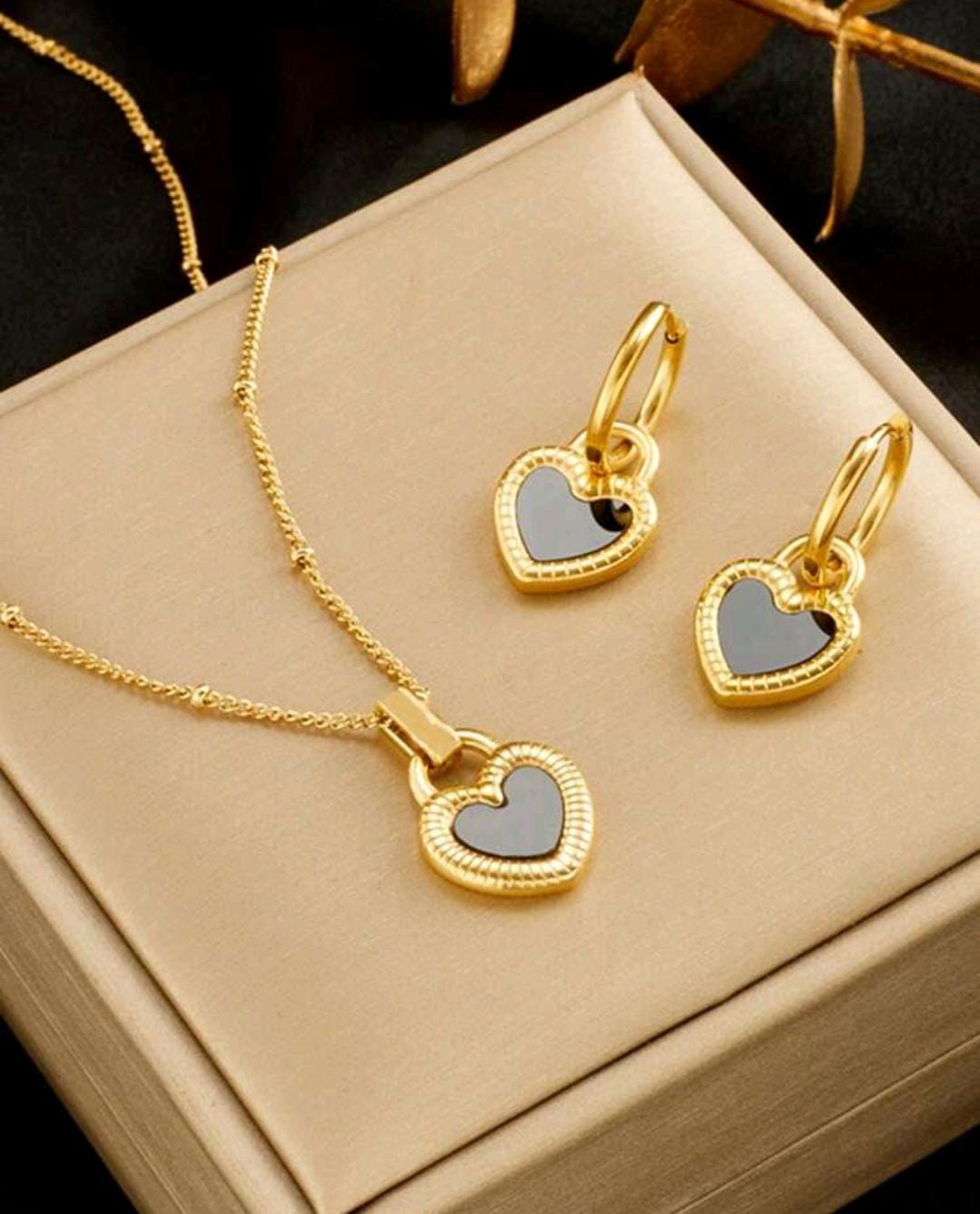 Set de joyas corazones gracia dorada